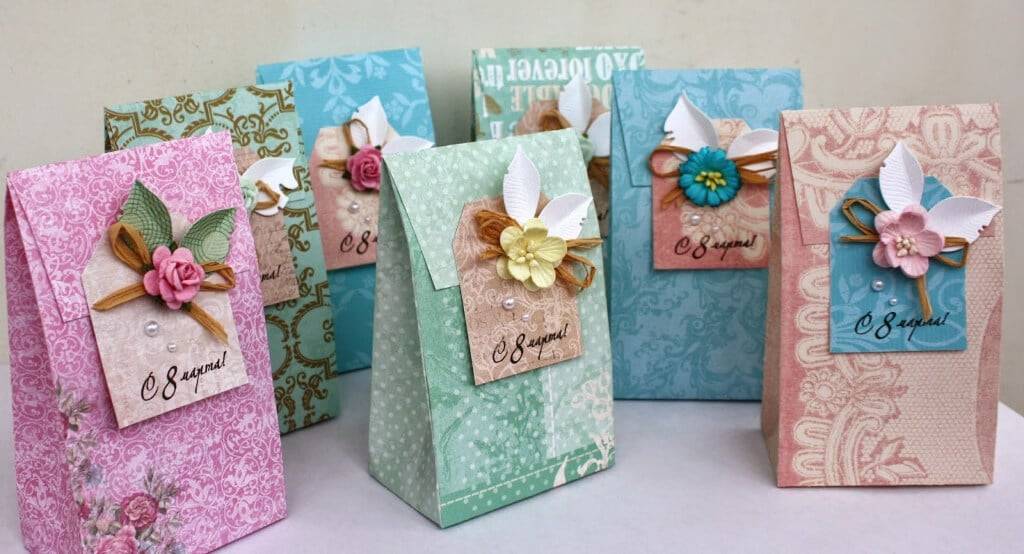 К оформлению презентов для коллег нужно подходить обдуманно. Лучшим решением будет одинаковый дизайн подарков для всего женского коллектива. Добавить индивидуальности можно «поиграв» с цветами обертки. Так дары не будет выглядеть шаблонно, но при этом сохранится общий стиль.