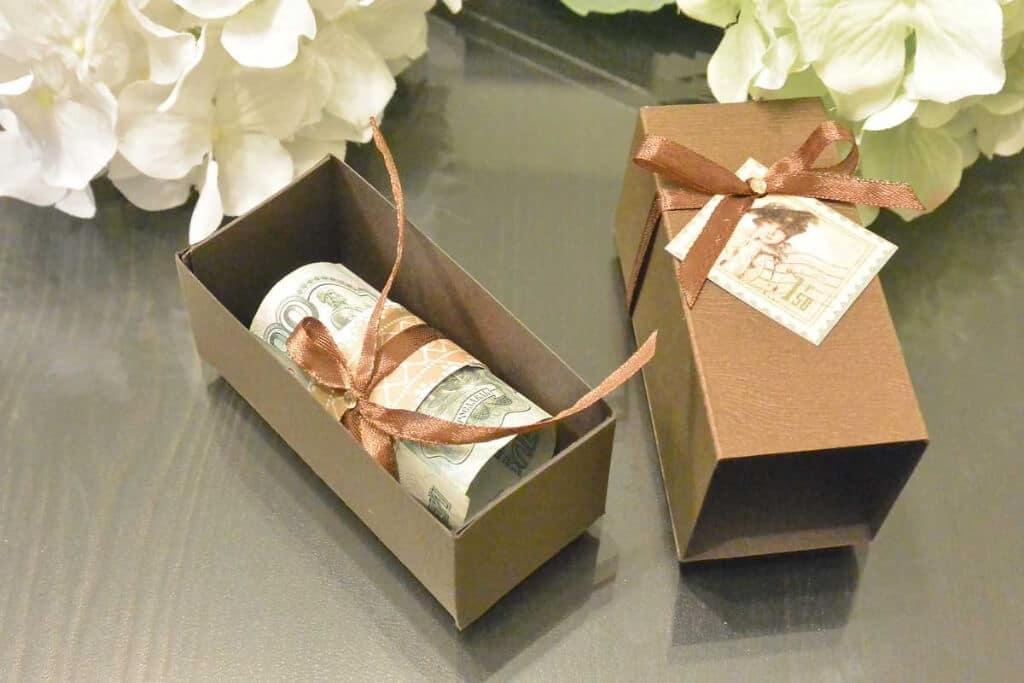 Даже после многих лет брака не стоит забывать о романтике. Самый скучный подарок, например, деньги — можно сделать хоть немного оригинальнее. Хотя бы добавить классическую коробочку и бантик — быстро и красиво.