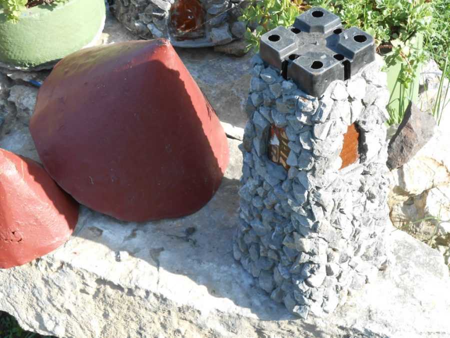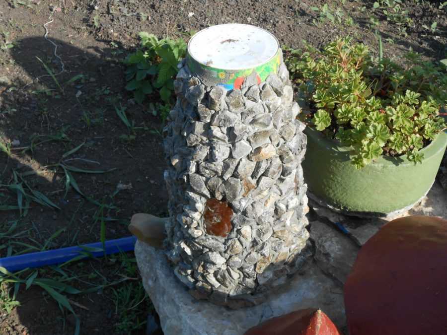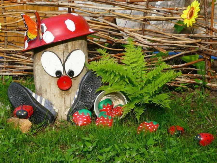 В ход идут старые автомобильные покрышки, пластиковые бутылки, пни, консервные банки и даже старая обувь. Остается лишь включить фантазию и приступать к делу.