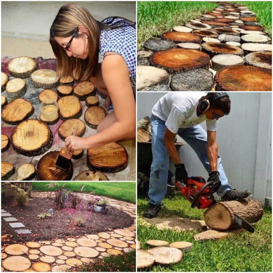 Одним из само собой напрашивающихся решений садового дизайна являются поделки из природных материалов. Пеньки и коряги оригинальных форм, мозаичные картины из мелких природных камешков, вазоны, оклеенные мелкими спилами, и фигурные композиции — из крупных, человечки из березовых поленьев и расписные фанерные фигуры животных, птиц, сказочных персонажей могут стать лейтмотивом в оформлении участка.