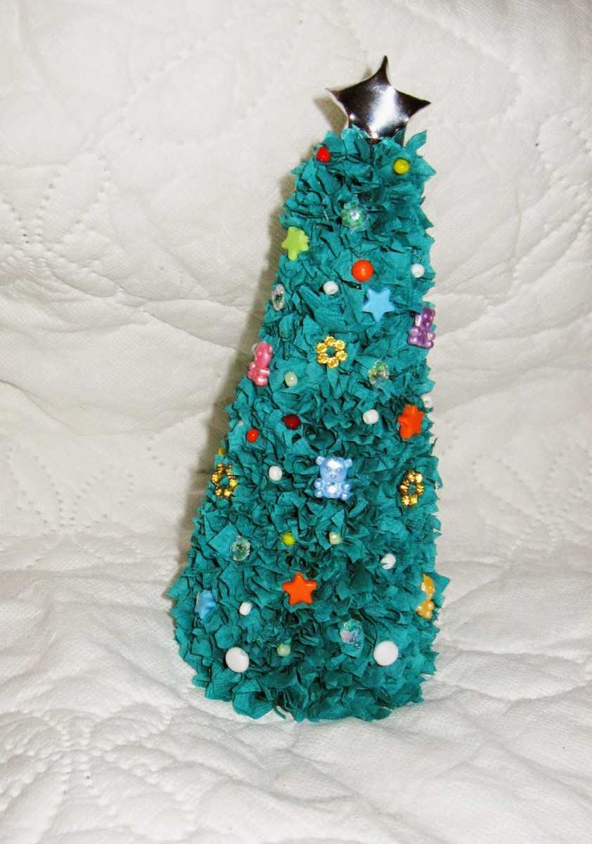 Такие поделки могут быть как одиночными, так и собираться в цепочки или композиции. Простейшим примером может служить елка, сделанная в виде конуса из картона. На нее можно наклеивать полоски, изображающие ветки, которые могут быть изготовлены из бумаги, салфеток, тканей, фольги и любых других материалов. Елку можно собрать из нескольких таких конусов разного диаметра, одевая их последовательно друг на друга.