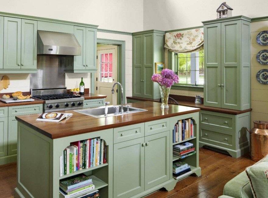 Также этот нежный фруктовый цвет в достаточном количестве аннигилирует визуальное сужение. Оливковый будет уместен как в классических, так и в современных дизайнах кухонь.
