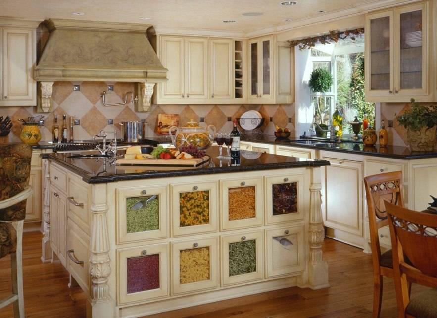 Наполнять кухонный интерьер призваны кухонные принадлежности декоративного предназначения. К таким вещам относятся: