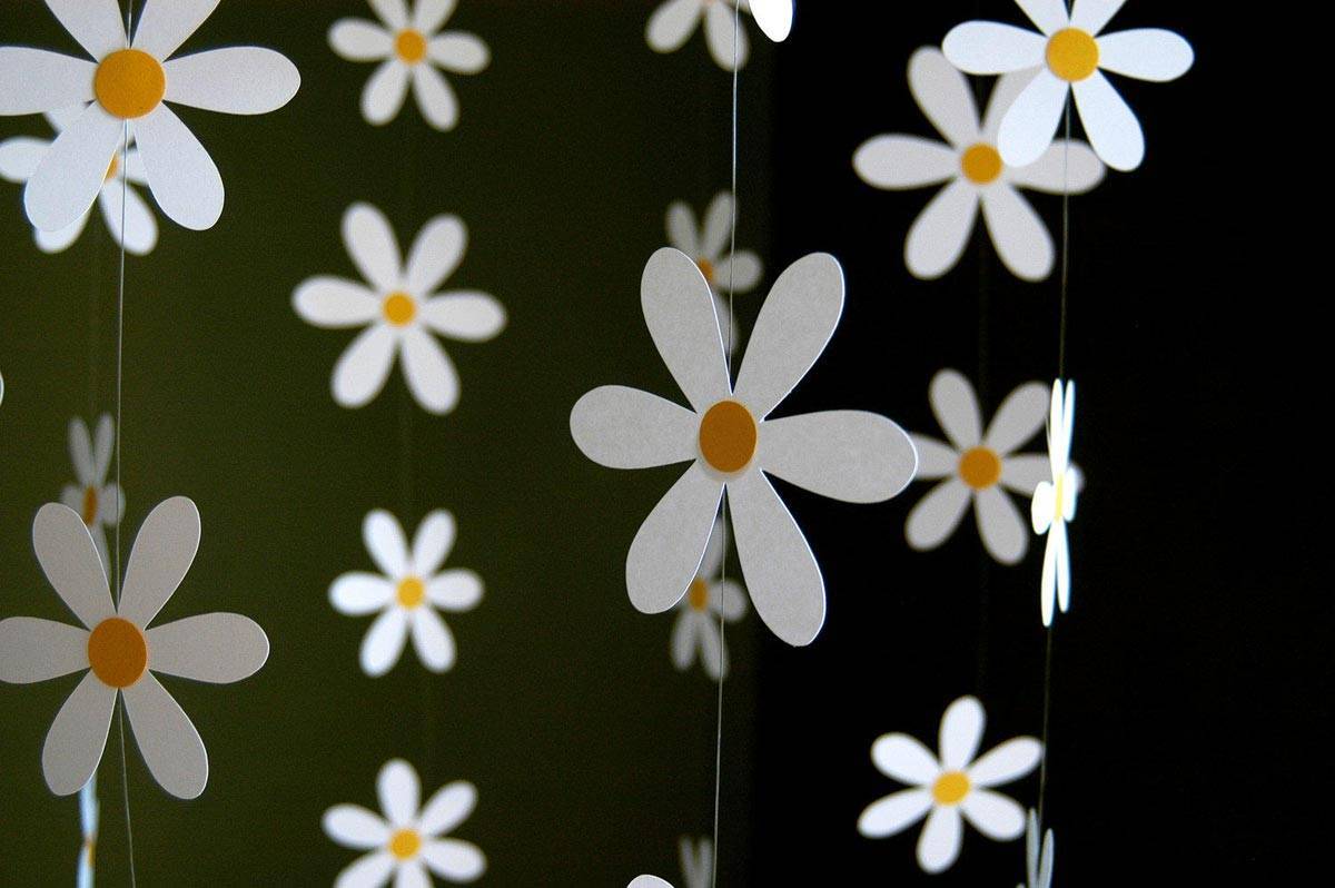 Конечно, горизонтальную гирлянду можно сделать по такому же принципу, что и вертикальную. Однако интереснее смотрятся объемные цветы, нанизанные на нитку. Как сделать такие украшения на 8 Марта?