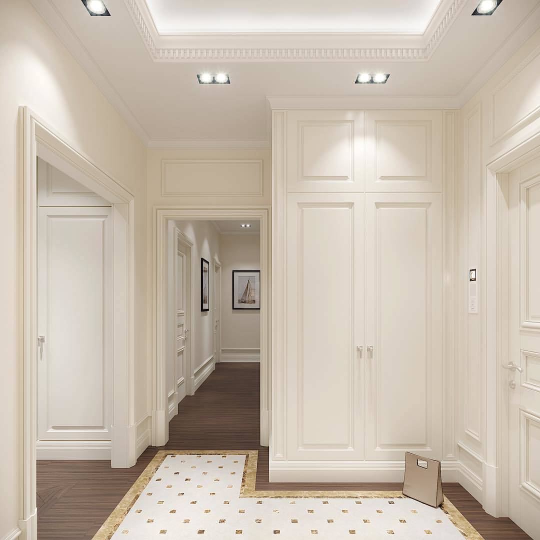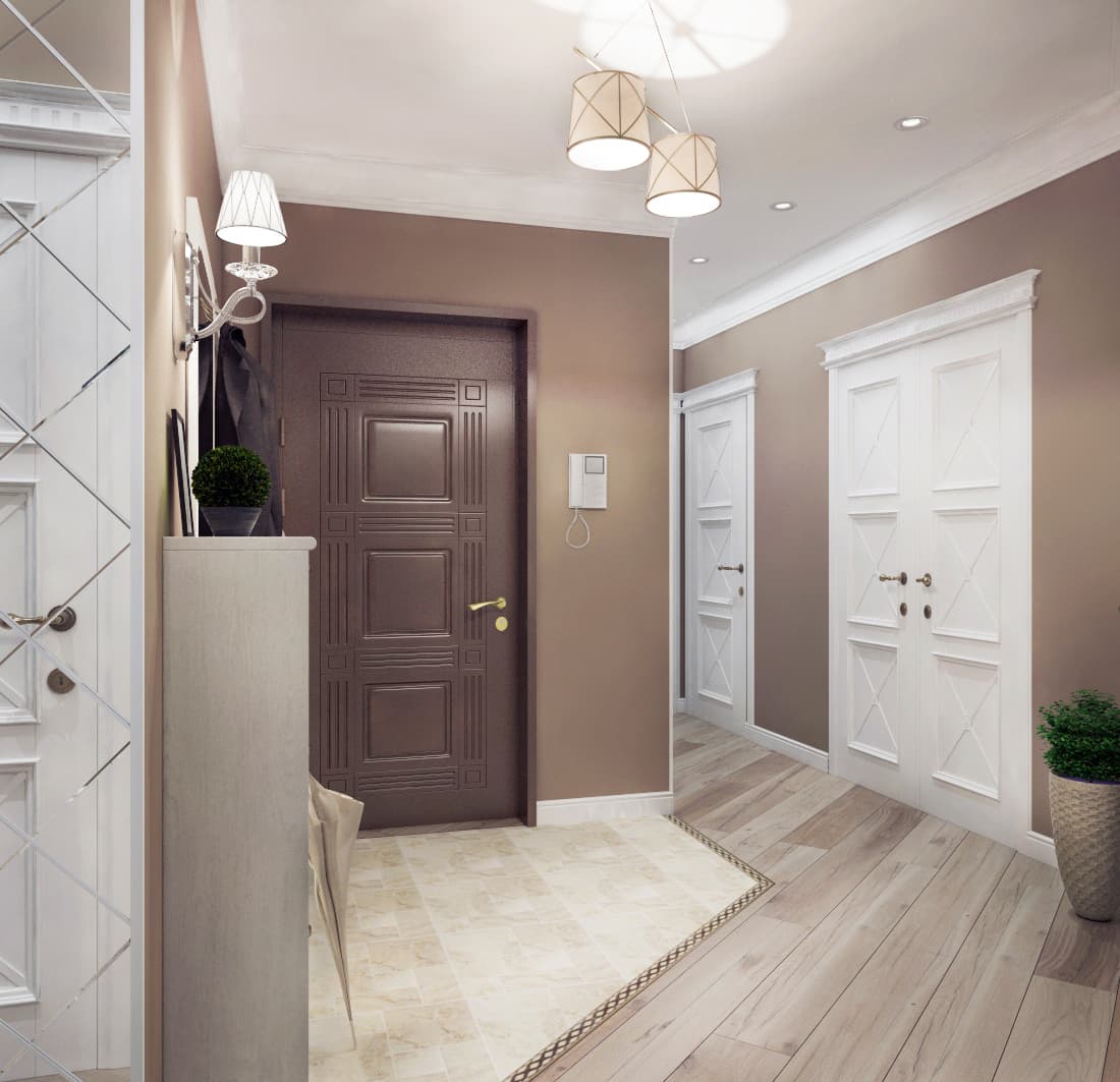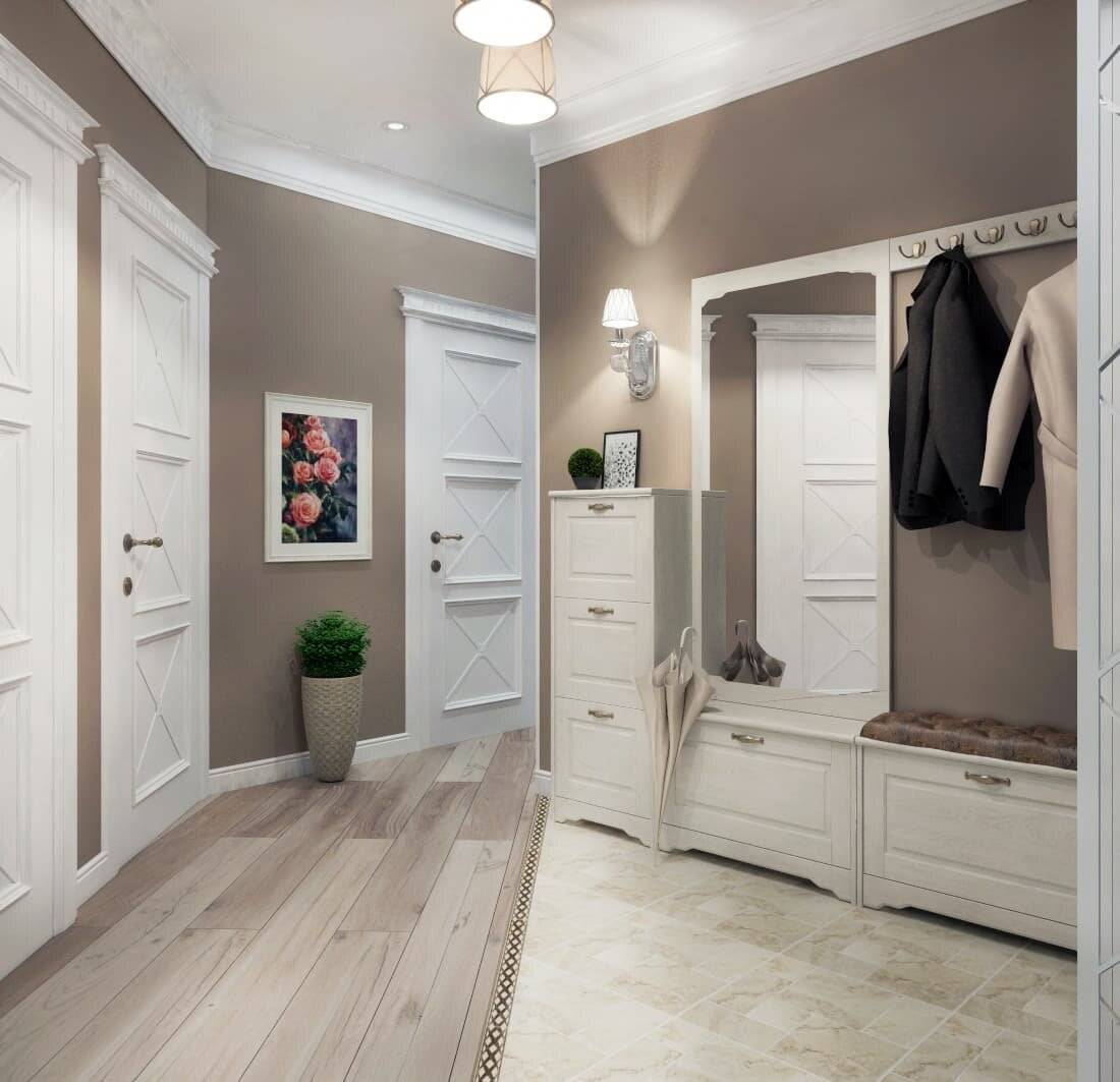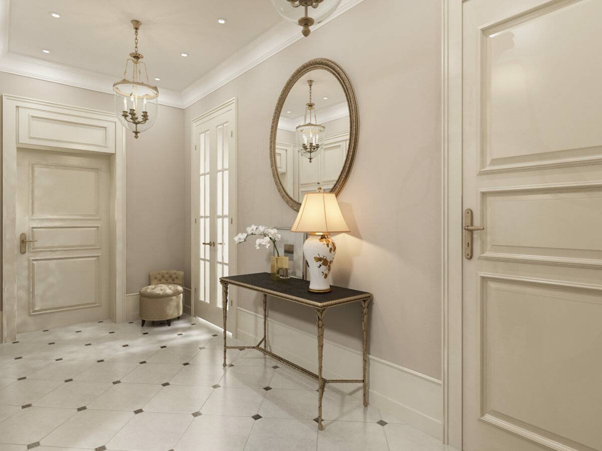 Отделка в классических интерьерах – это натуральные и дорогие материалы, но не забывай о функциональности прихожей. Выбирай только износостойкие покрытия и коллекции, которые не боятся влаги, грязи, пыли и высокой проходимости.