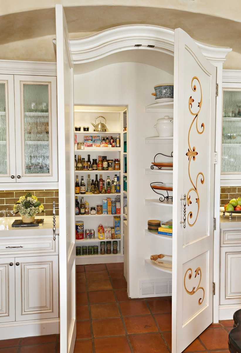 Поставьте емкости на открытые полки с ажурными кронштейнами. Будет смотреться очень красиво.