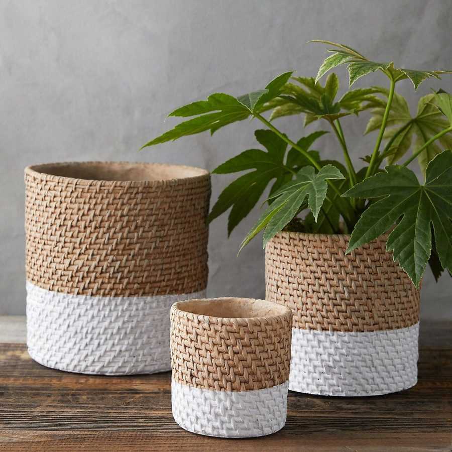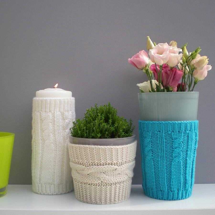 Если в наличии совсем нет красивых бусин, гофрированной бумаги или шпагата, но хочется творить и украсить имеющийся в наличии безликий горшок, то можно воспользоваться тем, что наверняка всегда найдется в хозяйстве, а именно речь идет об обычных нитках и пряже.
