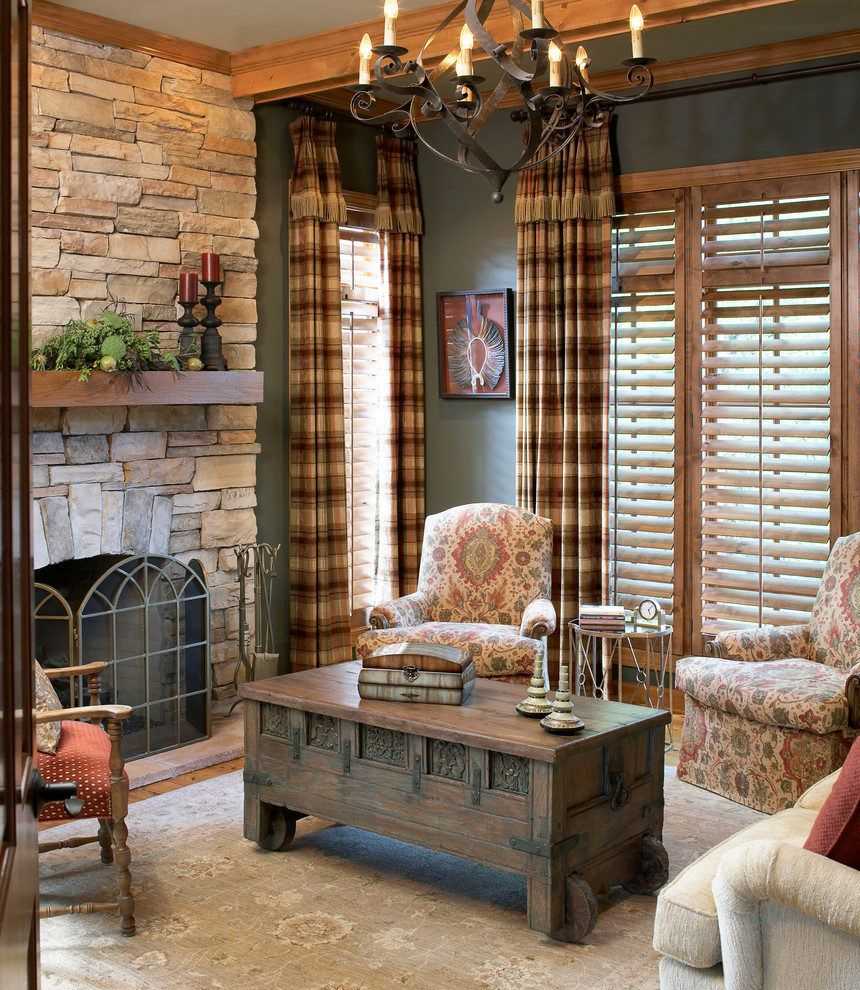 Предпочтительнее для данного стиля использование естественных материалов, таких как, металл, дерево, камень, мех. Текстиль имеет большой выбор и разнообразие.
