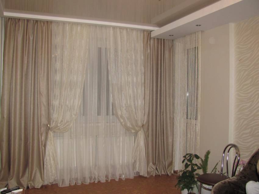 Для дополнения портьер используют ткани с прозрачными материалами. При правильно дополненной композиции они будут гармонично смотреться в интерьере.