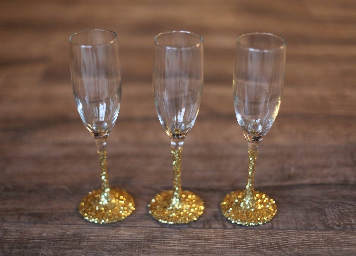 Например, обсыпка или обклейка бокалов блестками, стразами.