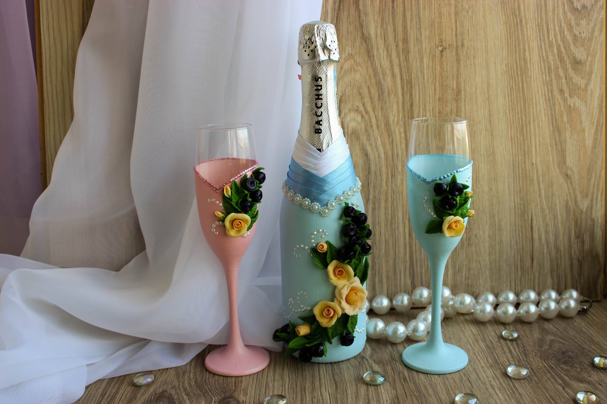 Немного поговорим о бокалах. Форма их должна быть довольно красивой и удобной, поскольку молодым супругам придется довольно долго удерживать их в своих руках.