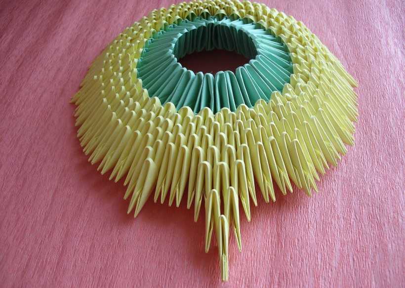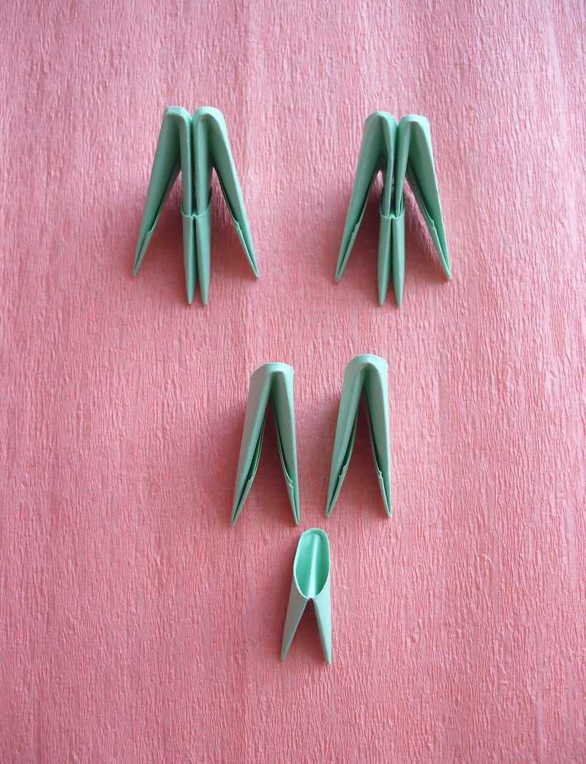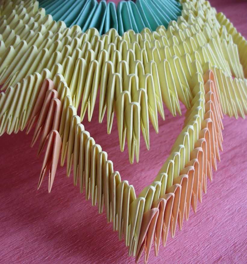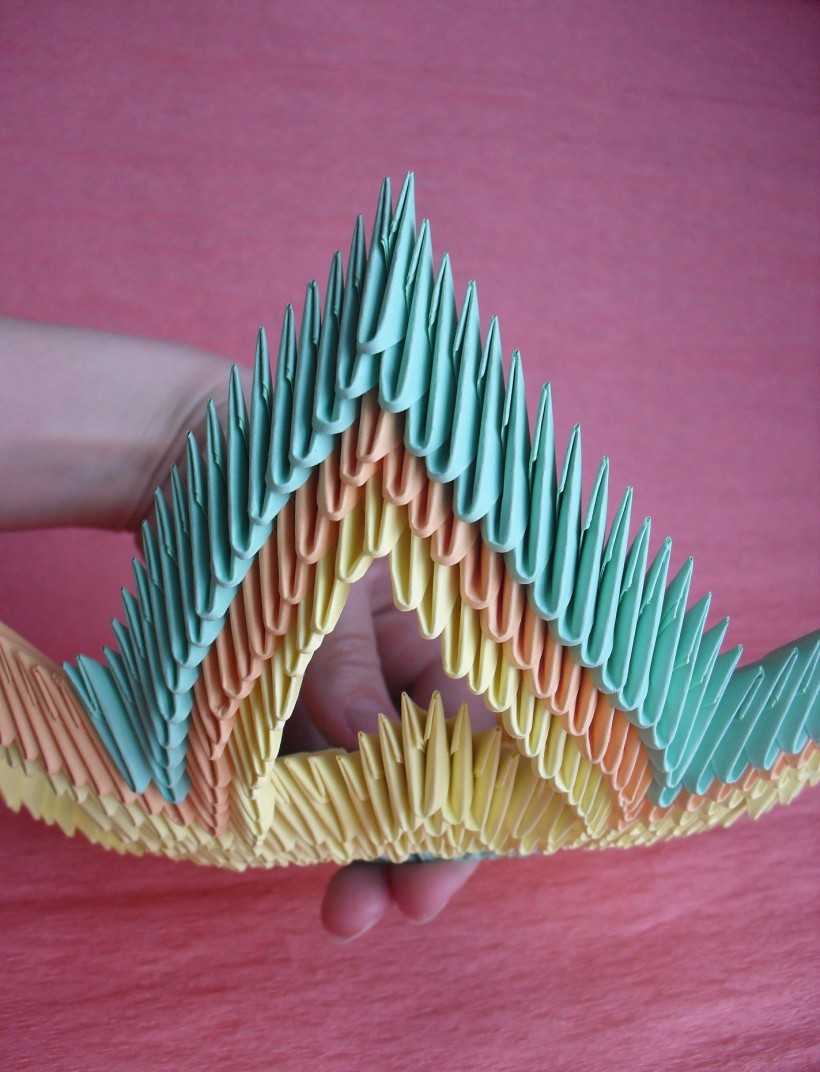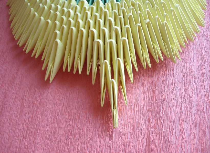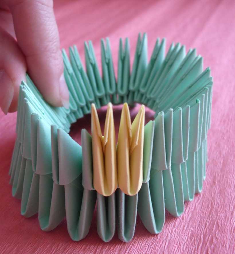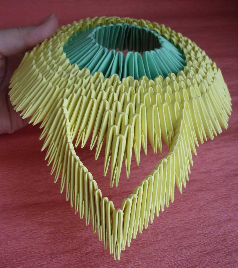 - Сложить нижний угол вверх. Надуть заготовку через получившееся отверстие. Оригами-ваза готова!