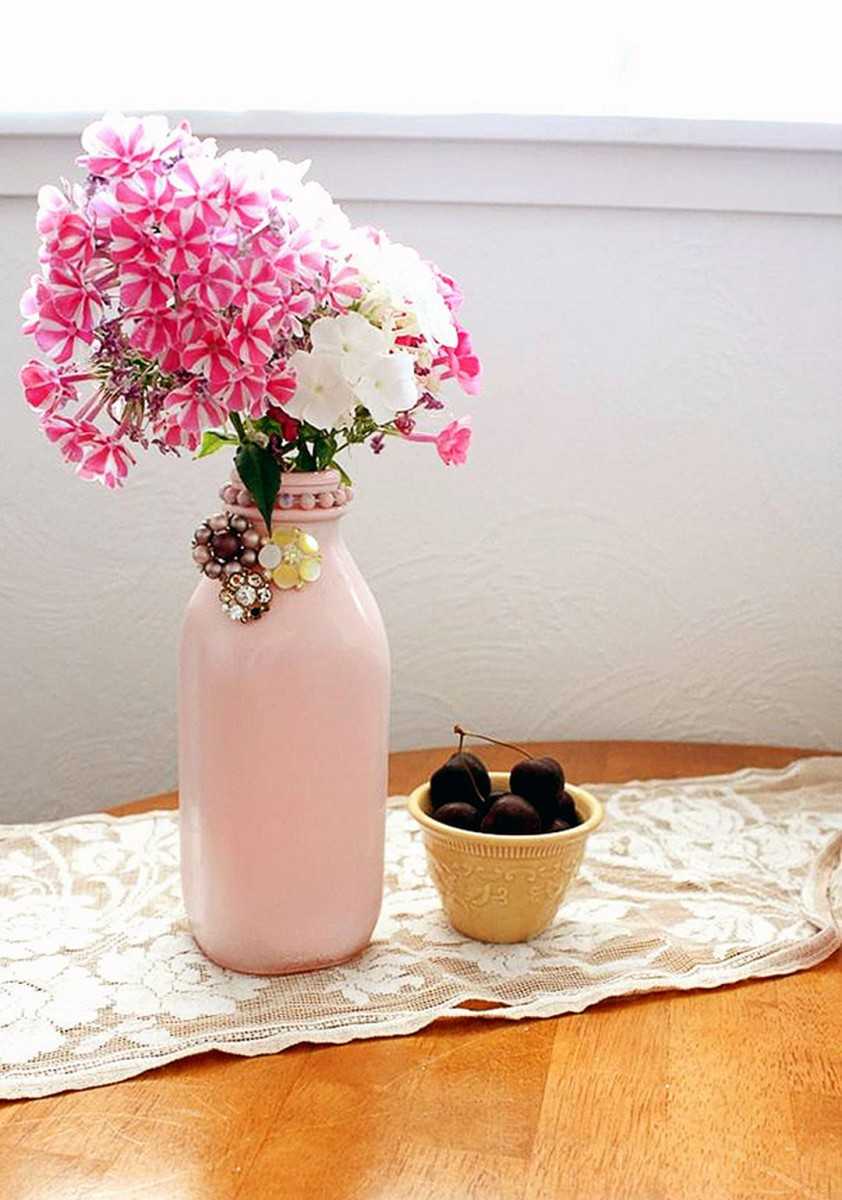 Практически любую емкость можно украсить при помощи бисера, пуговичек, блесток и других мелких деталей.