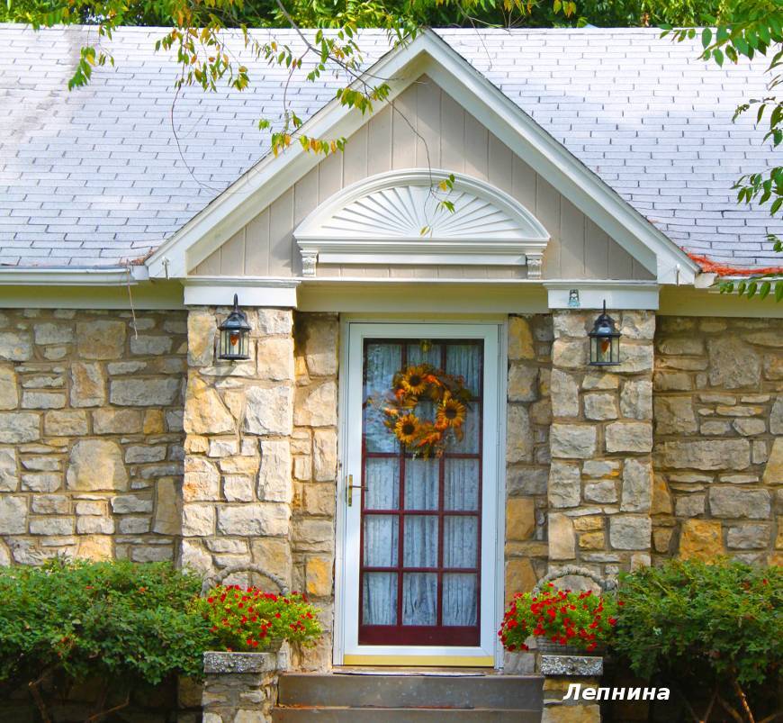 Чтобы облагородить фасад дома можно воспользоваться простыми дизайнерскими приемами. Вставки из декоративного камня в области цоколя: