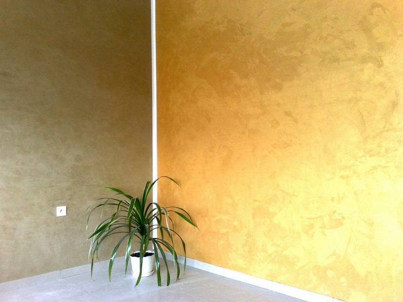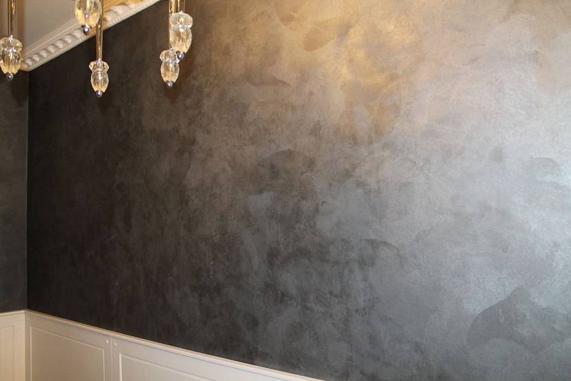 Способов нанесения у венецианки очень много: фактура может быть гладкой и шелковистой или рельефной и выразительной. Ее визитная карточка — красивые переливы оттенков, каменные «прожилки» и «жемчужный» эффект: стены словно светятся изнутри.