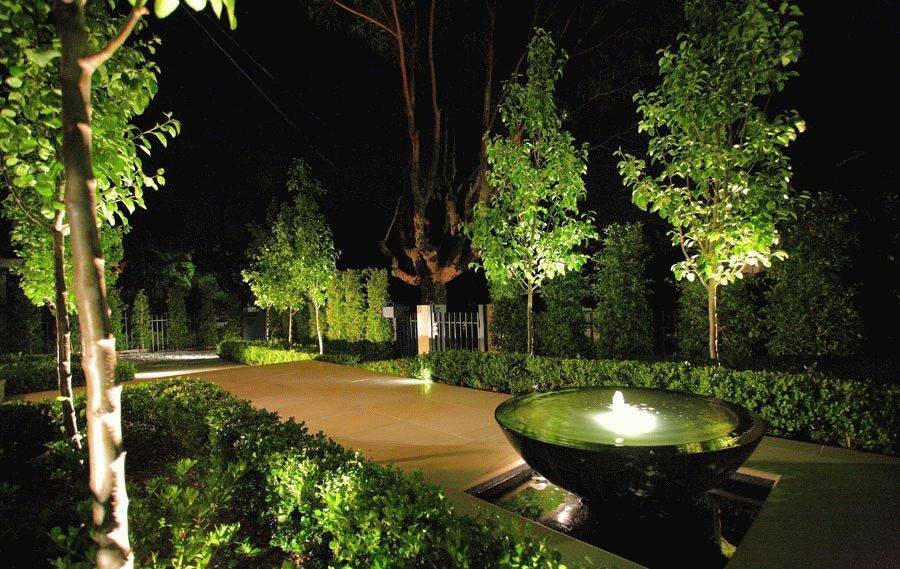 Подсветка. Особенно популярна и актуальна в последнее время светодинамическая разновидность светильников. Они пульсируют либо меняют цвет сообразно движению струй. Такой вариант часто используют в декоре городских, садовых и парковых фонтанов.