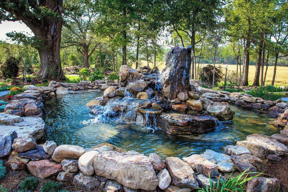 естественный сад – здесь будут уместны выдержанные в натуралистическом стиле «естественные» фонтаны, гейзеры или мини-водопады, обрамленные натуральным камнем, галькой и деревом. Или же это может быть стилизация под родник, в котором робкая струйка воды пробивается сквозь груду камней