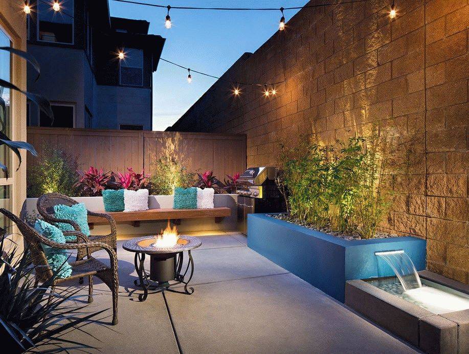 17. Фонтан с оборотной части печи-барбекю или камина на патио.