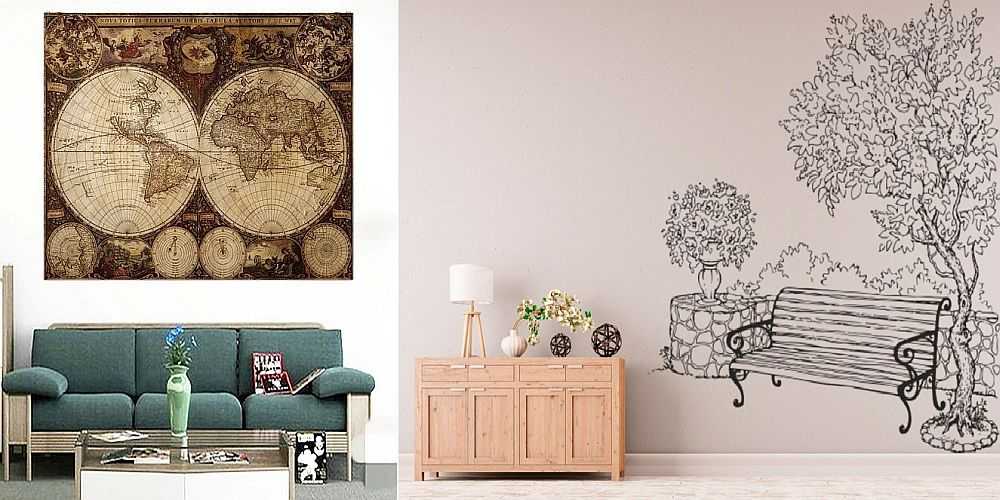 В крайнем случае, если у вас нет собственных идей, то можно воспользоваться специальными сервисами, такими как, например, Etsy или Wallfry, на которых можно найти много сюжетов для вдохновения (как на фото).