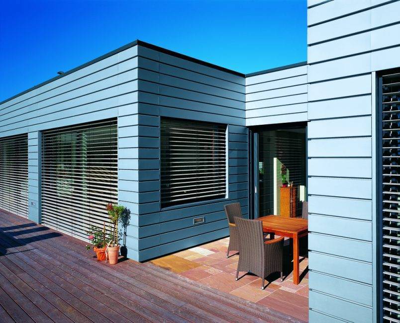 Прочность материала и его ветроустойчивость обеспечивается благодаря особенностям формы: для создания вентилируемой обшивки применяется профилированный оцинкованный лист. Аналогичные листы используются и в качестве кровельных для оформления крыши.
