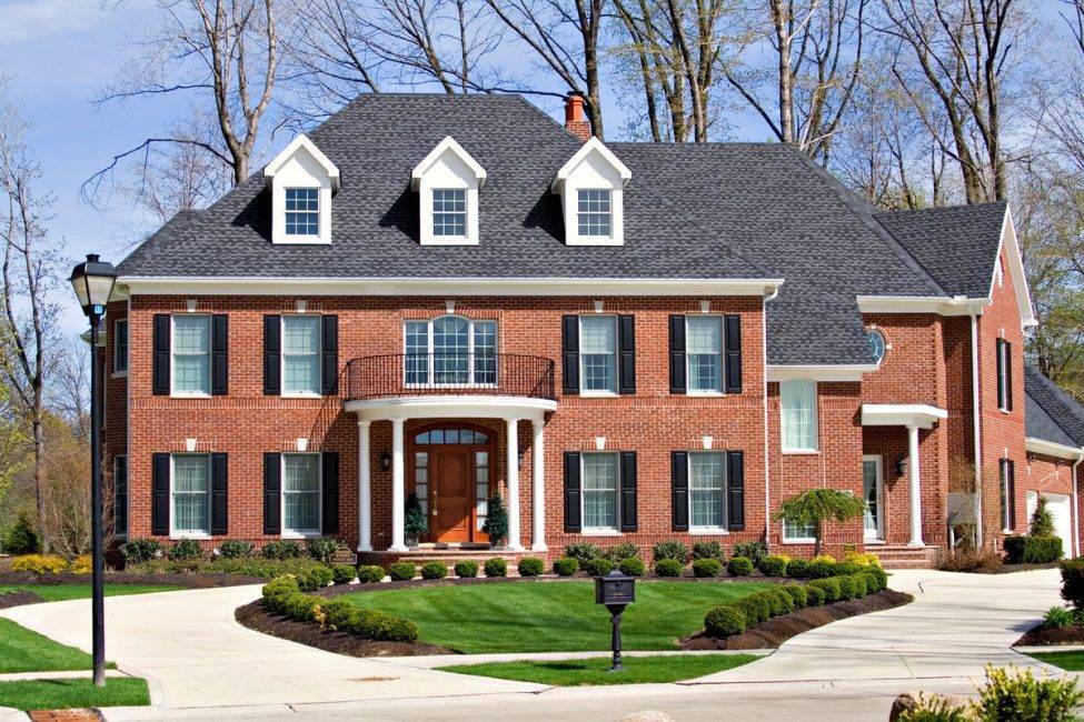 - Оттенки красного. Обычно считаются слишком яркими, потому нежелательными, но приглушенные варианты, вроде кирпичного, вполне отвечают классическим представлениям о загородном доме.