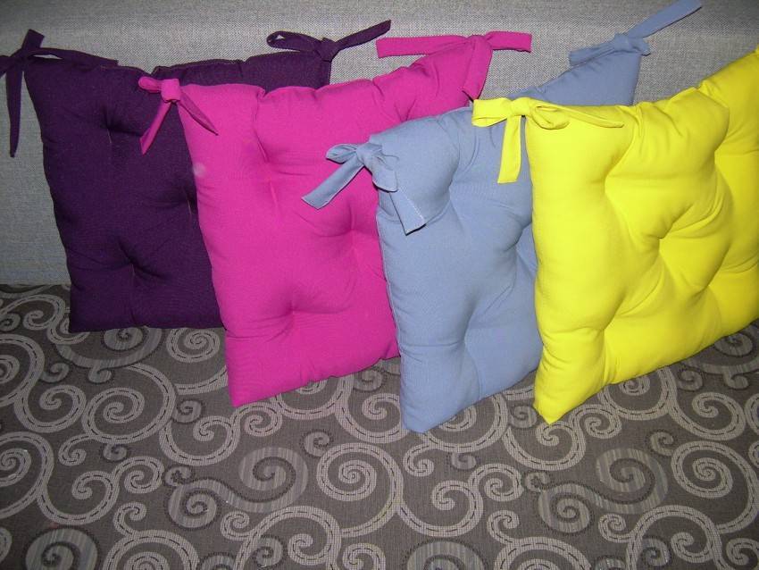 Подушки для стульев изготавливаются ничуть не сложнее стандартных, но выкройки нужно создавать самой в зависимости от модели стула.