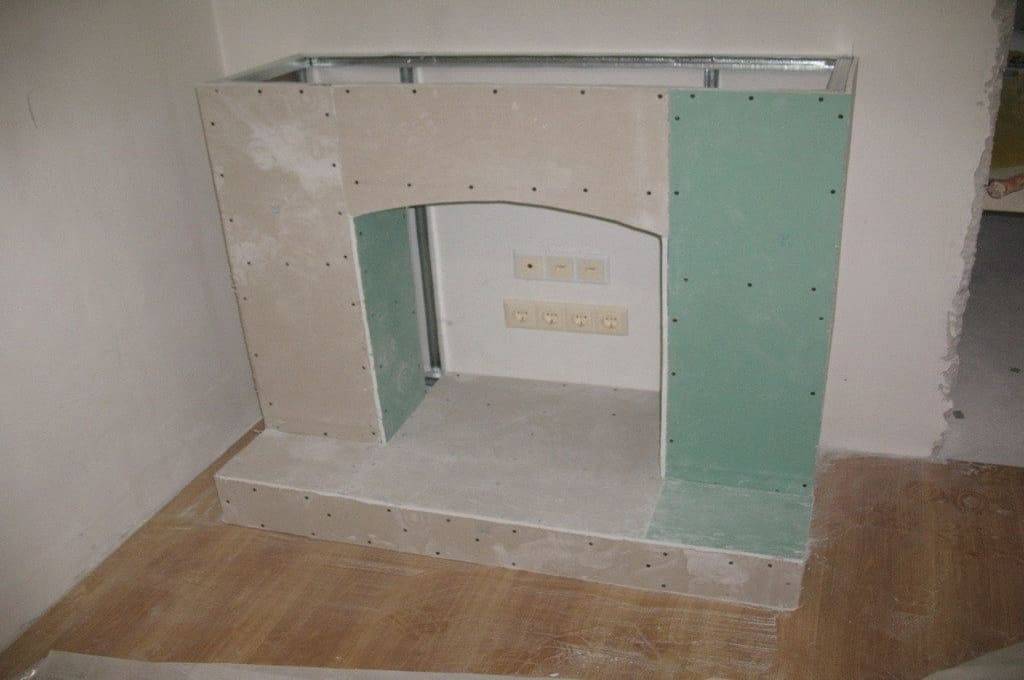 Монтаж каркаса камина своим руками декоративного вида из гипсокартона с подставкой: