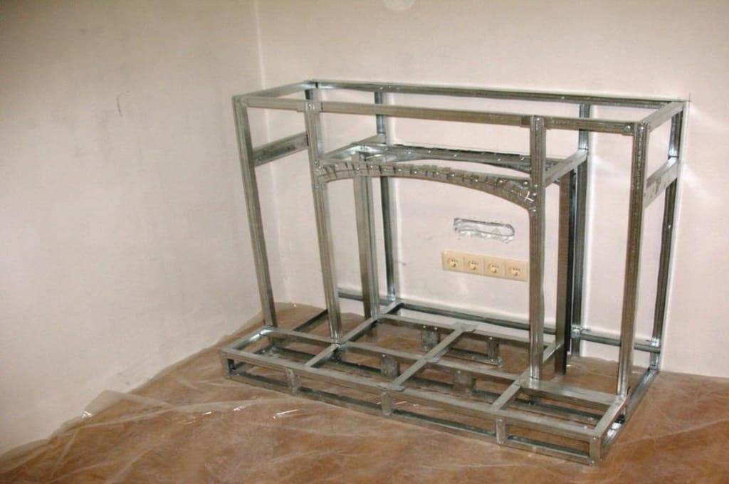 Монтаж каркаса камина своим руками декоративного вида из гипсокартона с подставкой: