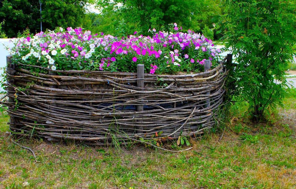 Если участок для декоративного ограждения относительно небольшой по размерам, то вполне можно остановить свой выбор на плетёных заборчиках