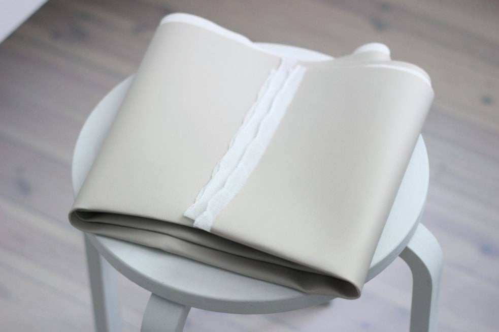 Поверх материала кладем сидение и вырезаем необходимую форму, согласно его размерам.