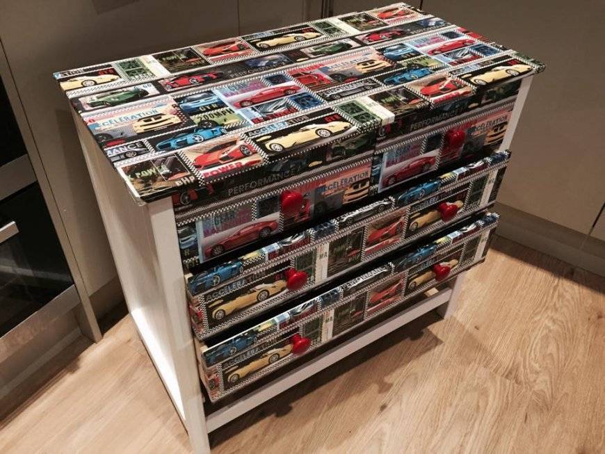 Такой способ декорирования мебели – самый простой и доступный в домашних условиях. Такой метод обновления подойдет для следующих изделий: