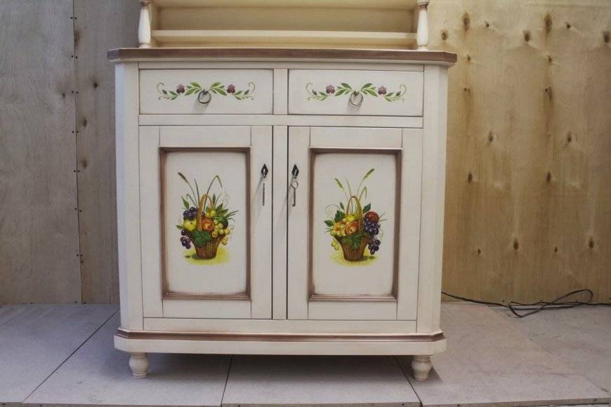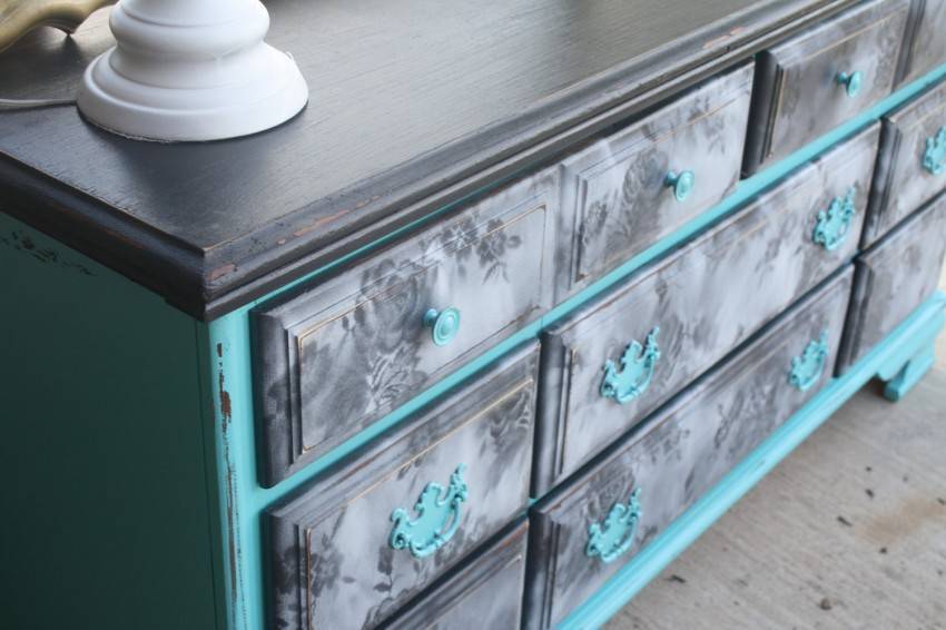 Идеально подходят для этой техники декора мебели столы, стулья, полки, гарнитуры для кухни, комоды.
