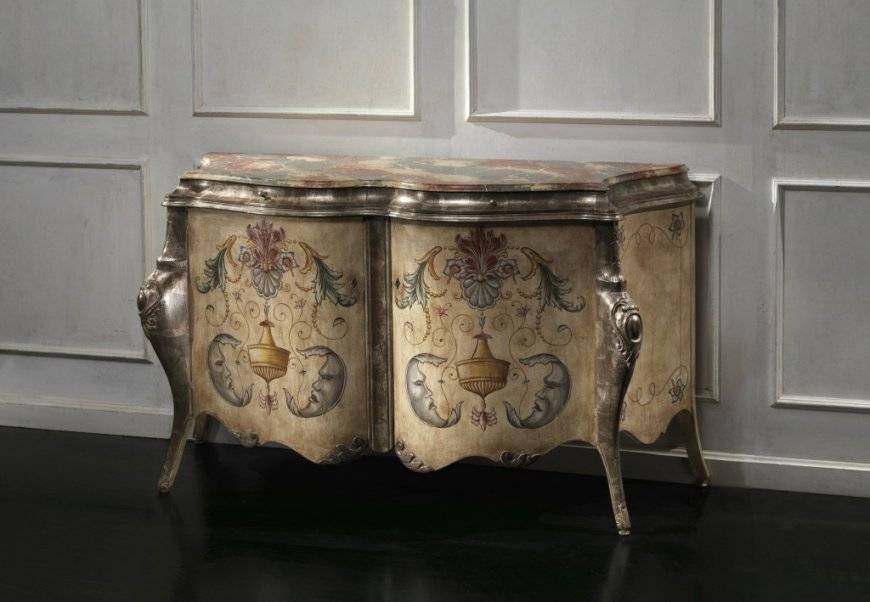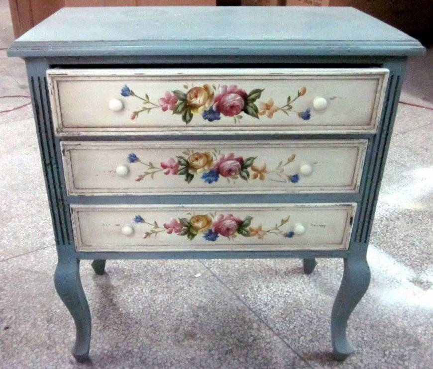 Данная техника требует недюжинного набора навыков, однако получившийся результат вас приятно удивит. Мебель, вмещающая в себе голубой, зеленый цвет вместе с золотистой отделкой выглядит просто роскошно. Чаще всего тематикой предмета является охота, пейзажи с животными или изображения цветов.