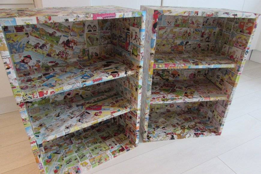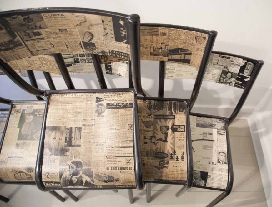 Такой оригинальный стиль подчеркивается мебелью, обклеенной вырезками из газет или старыми фотографиями.