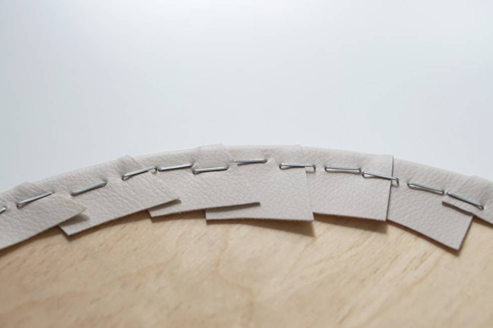 Подворачиваем срезы и прикрепляем ткань к нижней части сидения с помощью степлера.