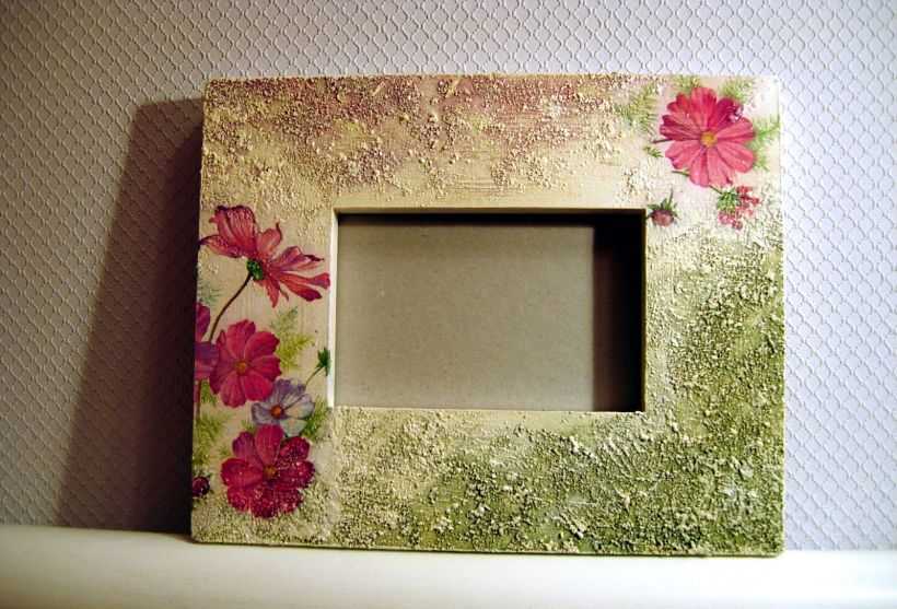С этой задачей сможет справиться любой художник, который уже набил руку на прямом декупаже. При украшении рамок, крышек шкатулок используют объемный декупаж.