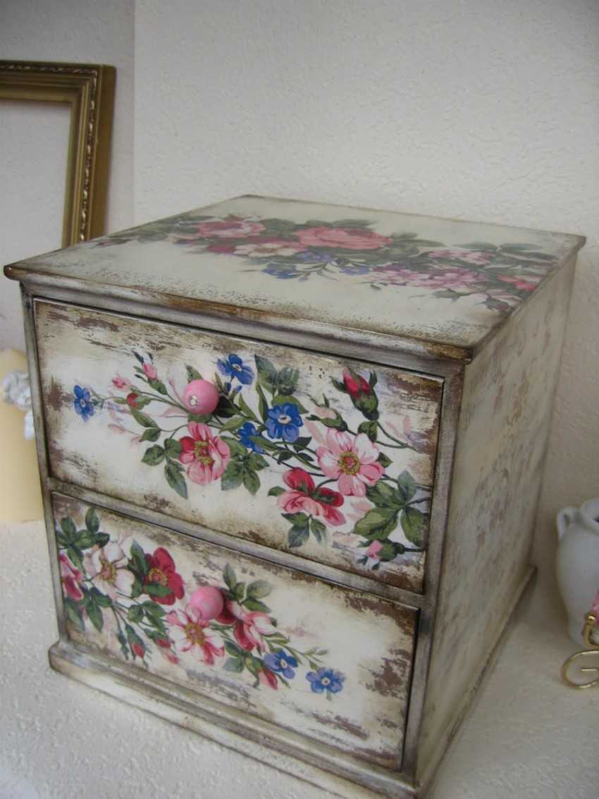 После декупажа мебель выглядит обновленной и стильной