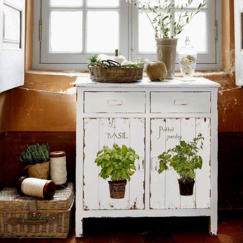Мебель, украшенная в технике декупаж с эффектом старины, хорошо впишется в интерьер, выполненный в стиле прованс