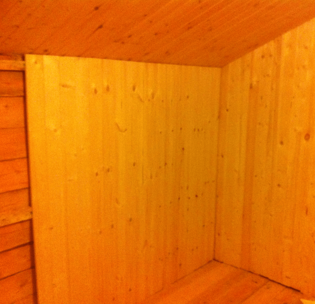 Единственное, в чем лиственница проигрывает осине, так это в склонности к образованию трещин, сколов, щепы, при сильном нагреве выделяется смола, к которой можно прилипнуть. Поэтому на пол и мебель парилки ее не используют. Облицовка из лиственницы обладает смолистым терпким запахом, который никогда не уходит, даже после нескольких лет службы.