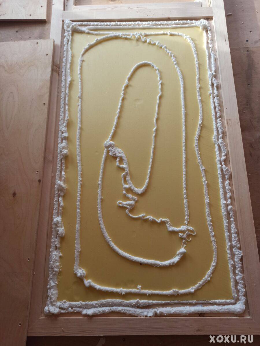 - Смазать клеем верхнюю часть рамы и уложить верхний щит из ДВП.