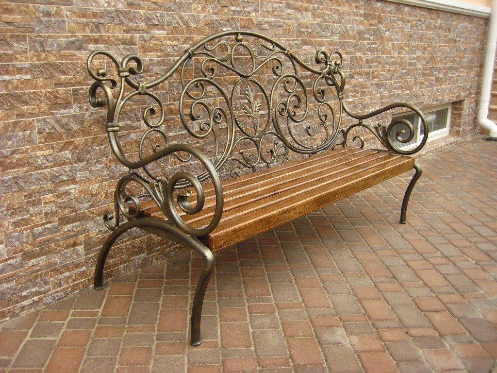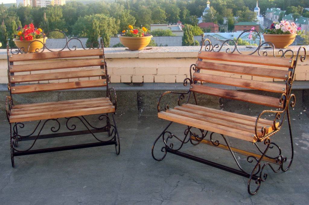Изысканные кованые лавочки стоят недешево. Их применяют на участках с хорошим ландшафтным дизайном, где в таком же стиле обустроены и другие элементы двора и сада – беседки, качели, навесы, шпалеры с цветами.