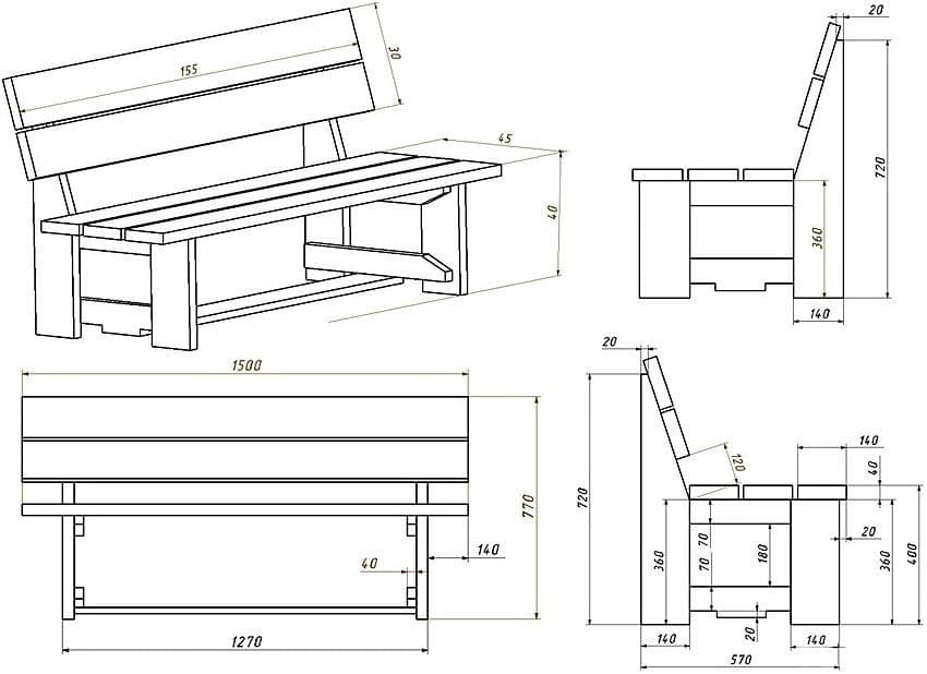Самое важное, чтобы сделать лавку своими руками- правильный чертеж будущего садового шедевра