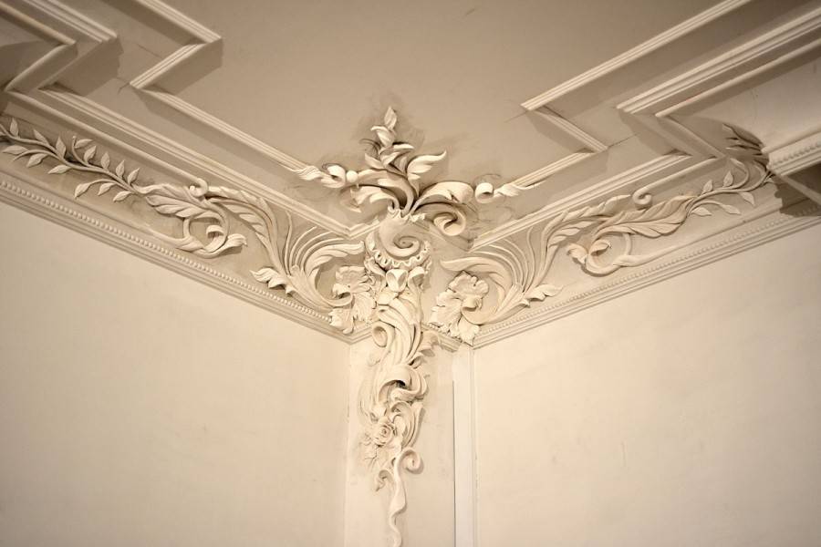 В классическом интерьере главным украшением станет деревянный кессонный потолок или декор в виде лепнины и витражных вставок.