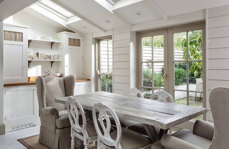 Наиболее востребованными считаются строения в духе Прованса, где перекрытия делают из светлой древесины или покрывают побелкой. На кухне в стиле прованс уместно декорирование гирляндами из чеснока и лука, подвешенными к балкам сухими букетами лаванды и пряных специй.