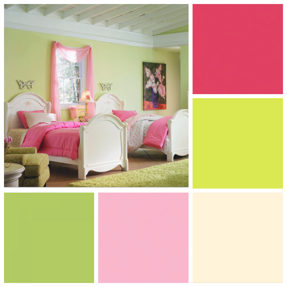 Цветовая палитра для комнаты девочек может быть самой разнообразной. Приступая к процессу оформления данного помещения, родители не должны полагаться только лишь на собственный вкус. Из-за такого подхода есть риск, что дети не полюбят оформление и будут чувствовать себя не очень комфортно. Поэтому рекомендуется предоставить им возможность выбора из нескольких продуманных взрослыми вариантов.