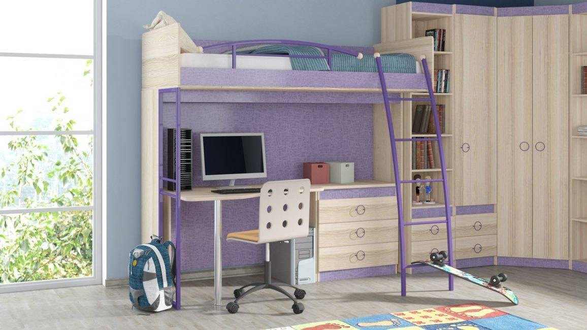 Наличие компьютерного или письменного стола – это важный элемент любой современной комнаты ребенка. Для него же зачастую не хватает места. А модель со спальным местом на высоте освобождает под собой достаточно пространства для установки полноценного стола для занятий. Таким образом, на одном месте решается сразу два вопроса: отдыха и учебы. Остается разобраться, какие особенности имеет каждая вариация моделей таких необычных кроватей.