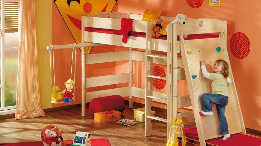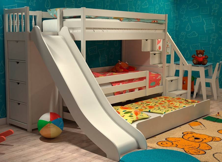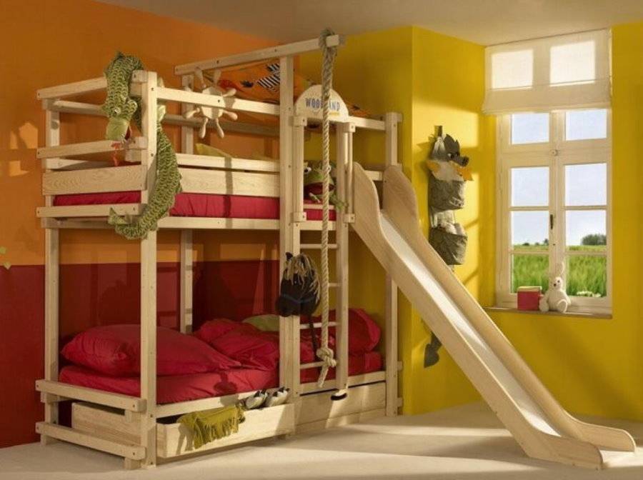 Обустройство спального места с встроенной горкой предполагает множество положительных сторон: