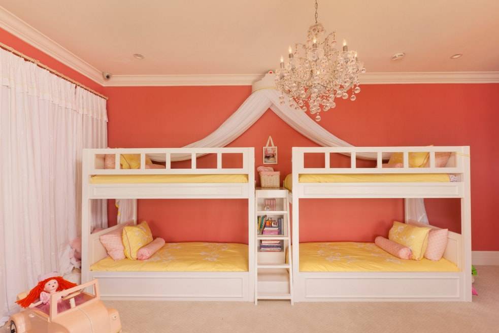 Если разница в возрасте большая, место сна самого маленького малыша можно отделить балдахином.