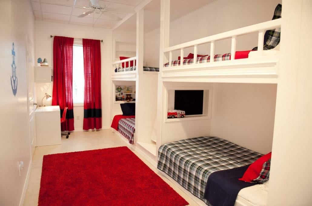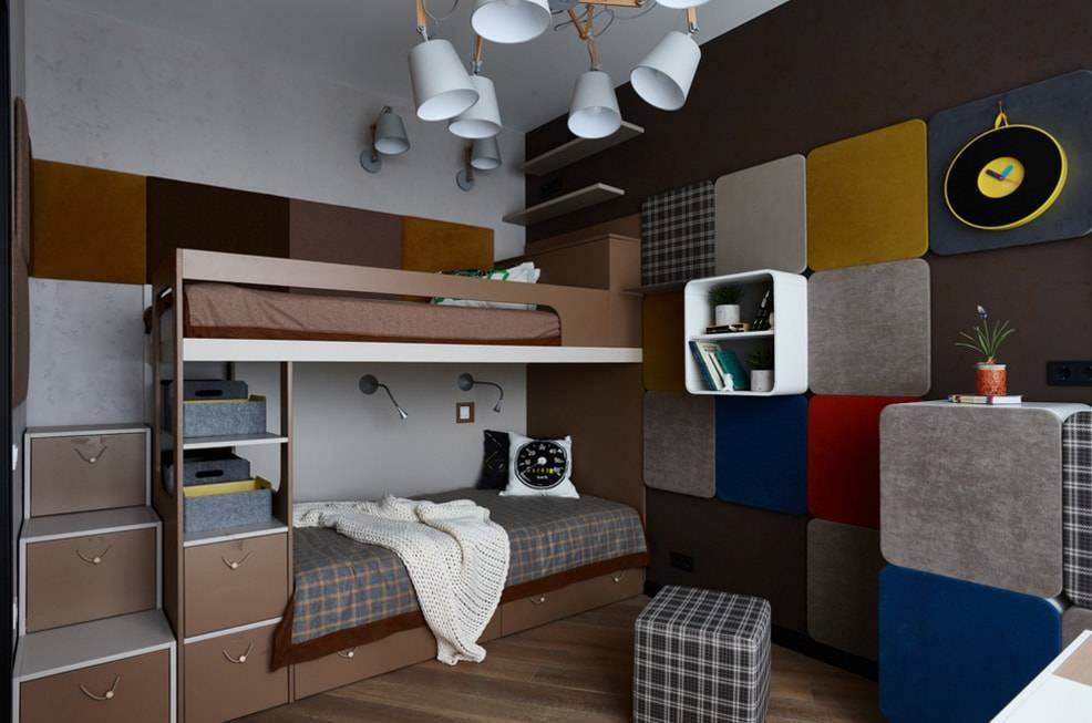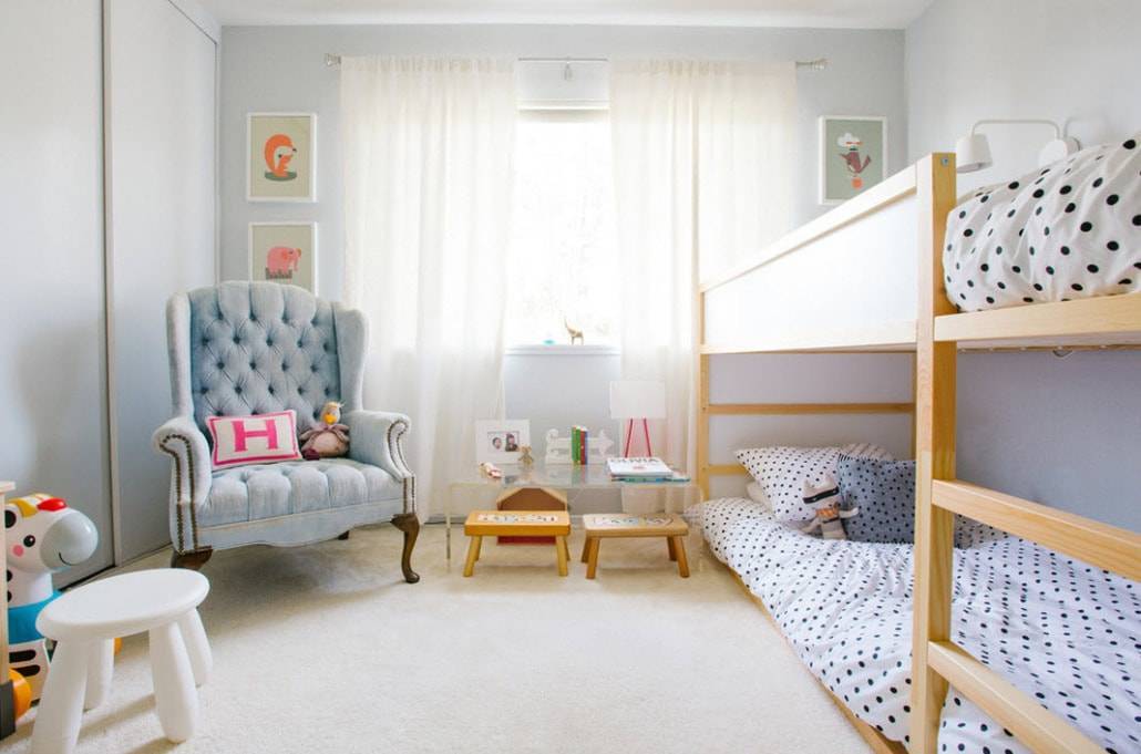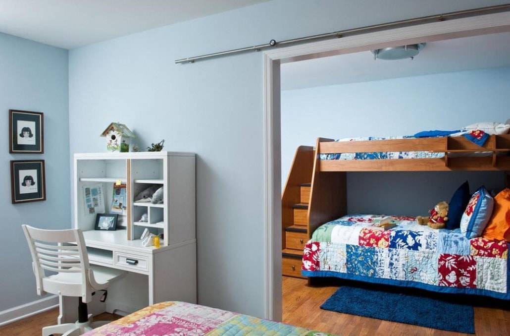 В просторной комнате можно обустроить все так, чтобы каждый ребенок занимался своими делами и не мешал брату или сестре. В маленькой спальне нужно оставить все необходимое. Спальное место у каждого должно быть свое.