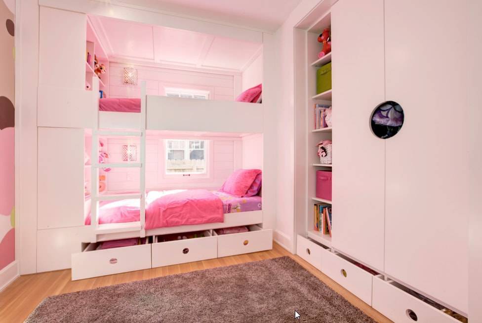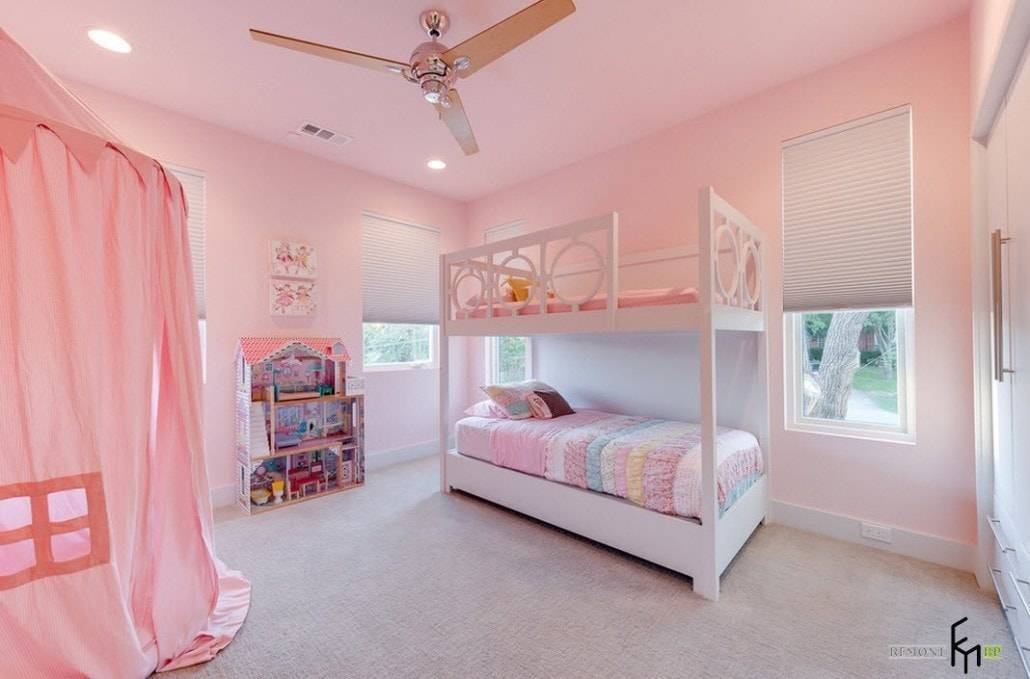 Компактная кровать-чердак с письменным столом для девчачьей спальни. От Sunset Properties of Tampa Bay